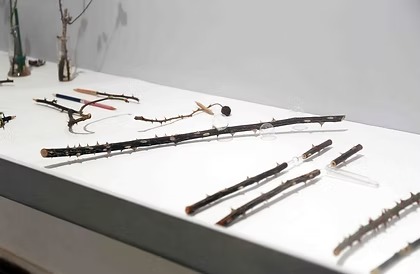 The Contemporary Hybrid exhibition articulates around the artistic research developed to create Sant Jordi’s poster ordered by the University of Barcelona to us. The poster represents the process of hybridization of a new variety of rose using the method of automatic fertilization of the renowned Catalan hybridizer Pere Dot (1885-1976).