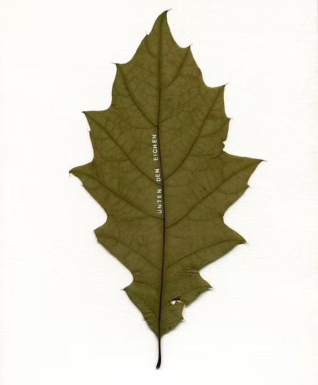 Most of the leaves that make up this installation have been collected precisely on walks through the streets that bear their name. We find these same streets compiled and traversed in Spazieren in Berlin (Walks through Berlin) by Franz Hessel, where the linden, acacia and oak trees are faithful witnesses to the city’s transformation.