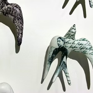 Thus, the handwriting and the gaps in the letters become the principal leitmotiv of the works produced throughout the project. Also, the widespread use of glass and porcelain, because of their immaterial and fragile nature, is appreciated, as well as the garments or textiles for their private and intimate appearance. On these materials, various techniques were used including photogravure, polymer and silkscreen printing, which facilitate the transcription and transfer of all kinds of texts, photographs and images.