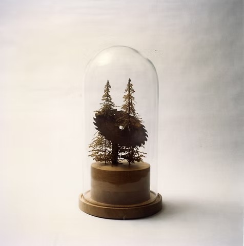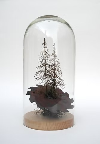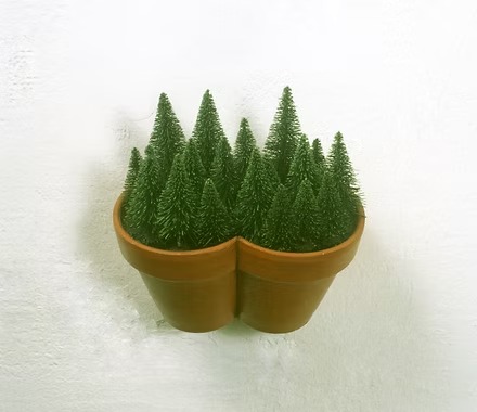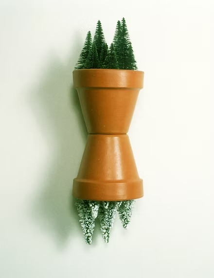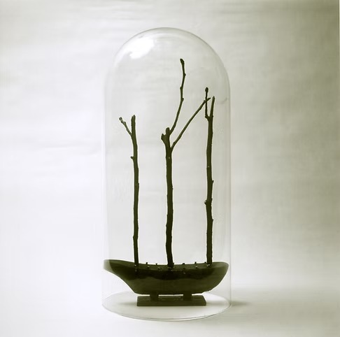 In Bosc (Forest), 1993, in a twin pot grows a miniature fir forest that speaks to us, not only of domesticated nature, but also, because of its container, about a genetic manipulation by means of the help of science. In Llac, (Lake), 1993, two pots are attached at their base and the image unfolds on the vertical axis, as if it were a mirage where the two forests become reversible. A subtle nuance differentiates them in their focus; the presence of the seasons.
