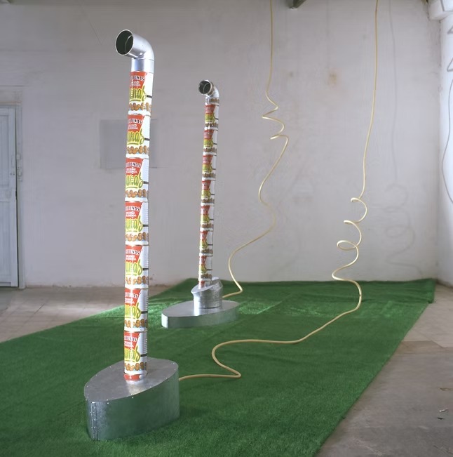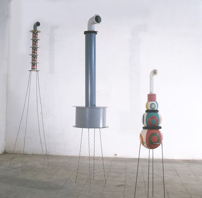 As a collector of materials, her sculptures are also structured in collections, in series that have as their reference the materials qualities; and that have in the living space the starting point for abstractions and inventions, and conceptual desires, as are the observant characters. Globally, her pieces combine a measure of a beautician’s will, while taking into account a certain sociological irony, translated into visual gags, a visual poetics and the intrusion of certain distasteful touches that arise from rampant evidence of everyday kitsch, from cool, shiny and angular materials, they approximate others, corroded and dull, in a diversion of artificiality and functions.